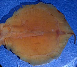 Figure. Ventral view of the fins of E. atlantica, 105 mm ML, immature male, 34°20'N, 35°24'W, NMNH 884059. Photograph by R. Young.