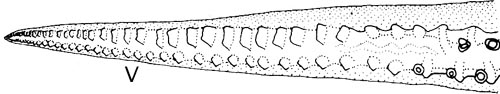 Figure. Oral view of the dactylus of the tentacular club of Illex sp. Photograph by M. Vecchione.