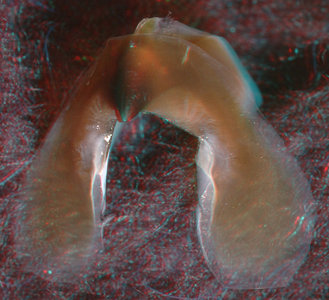 About anaglyph 3D: Photographs here are in 3D, using anaglyph techniques which combines two photographs one in red and the other in cyan (blue + green) color. To get the 3D effect, you must use glasses with red and cyan lenses (filters) over your regular glasses. The form of the beak is far easier to interpret in 3D and we strongly recommend to the viewer that the glasses be obtained (this is especially helpful when viewing enlarged images - i.e. click on the image). These beak photographs were made using Red and Cyan Anachrome Aviator Glasses (see: http://www.anachrome.com/glassbuy.htm or http://www.amazon.com) which cost under $10.00 (USD).