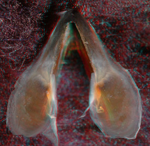 About anaglyph 3D: Photographs here are in 3D, using anaglyph techniques which combines two photographs one in red and the other in cyan (blue + green) color. To get the 3D effect, you must use glasses with red and cyan lenses (filters) over your regular glasses. The form of the beak is far easier to interpret in 3D and we strongly recommend to the viewer that the glasses be obtained (this is especially helpful when viewing enlarged images - i.e. click on the image). These beak photographs were made using Red and Cyan Anachrome Aviator Glasses (see: http://www.anachrome.com/glassbuy.htm or http://www.amazon.com) which cost under $10.00 (USD).