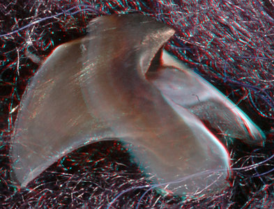 About anaglyph 3D: Photographs here are in 3D, using anaglyph techniques which combines two photographs one in red and the other in cyan (blue + green) color. To get the 3D effect, you must use glasses with red and cyan lenses (filters) over your regular glasses. The form of the beak is far easier to interpret in 3D and we strongly recommend to the viewer that the glasses be obtained (this is especially helpful when viewing enlarged images - i.e. click on the image). These beak photographs were made using Red and Cyan Anachrome Aviator Glasses (see: http://www.anachrome.com/glassbuy.htm or http://www.amazon.com) which cost under $10.00 (USD).